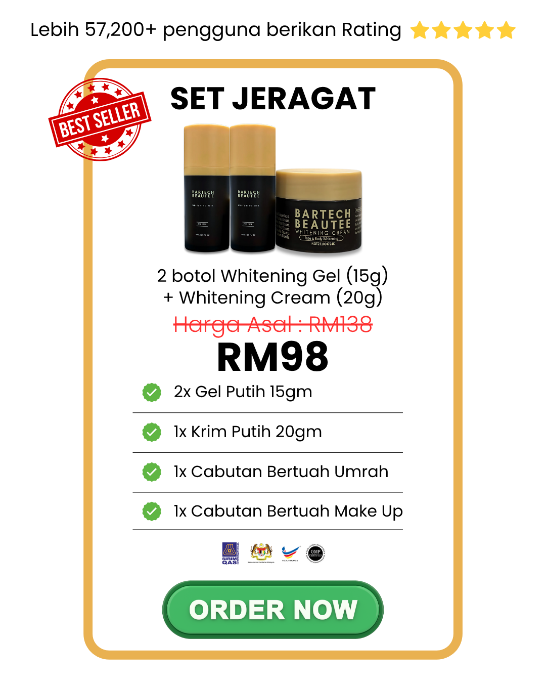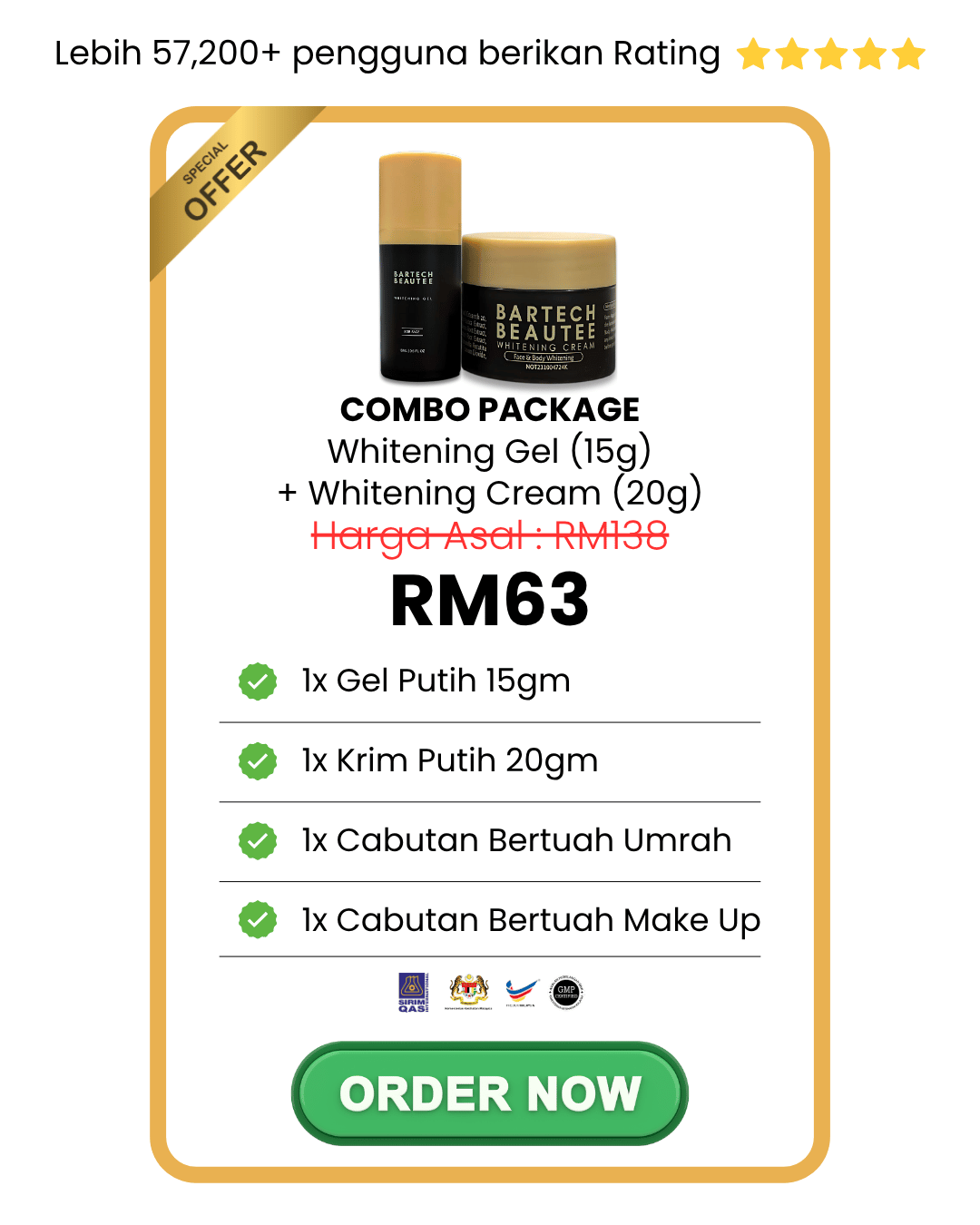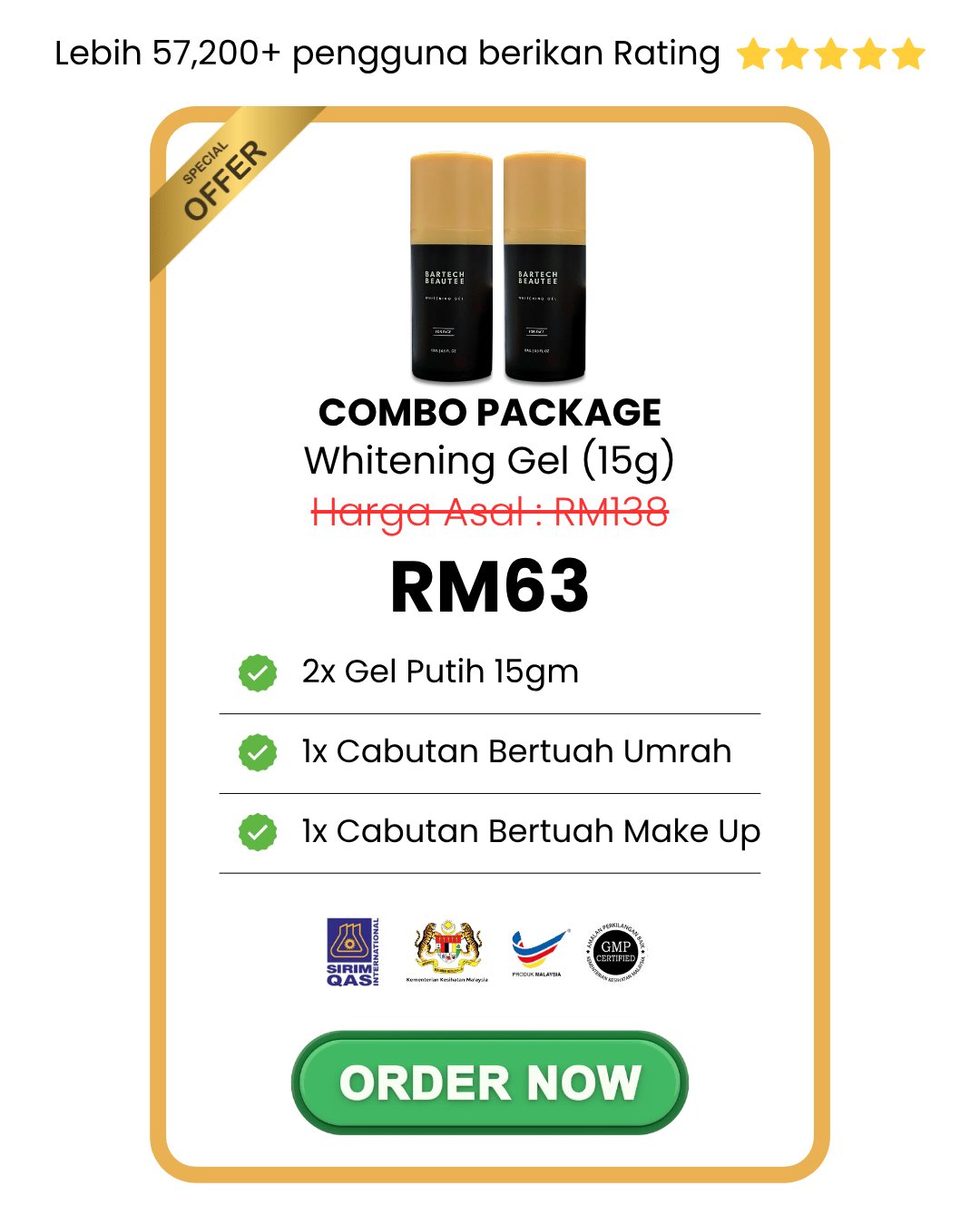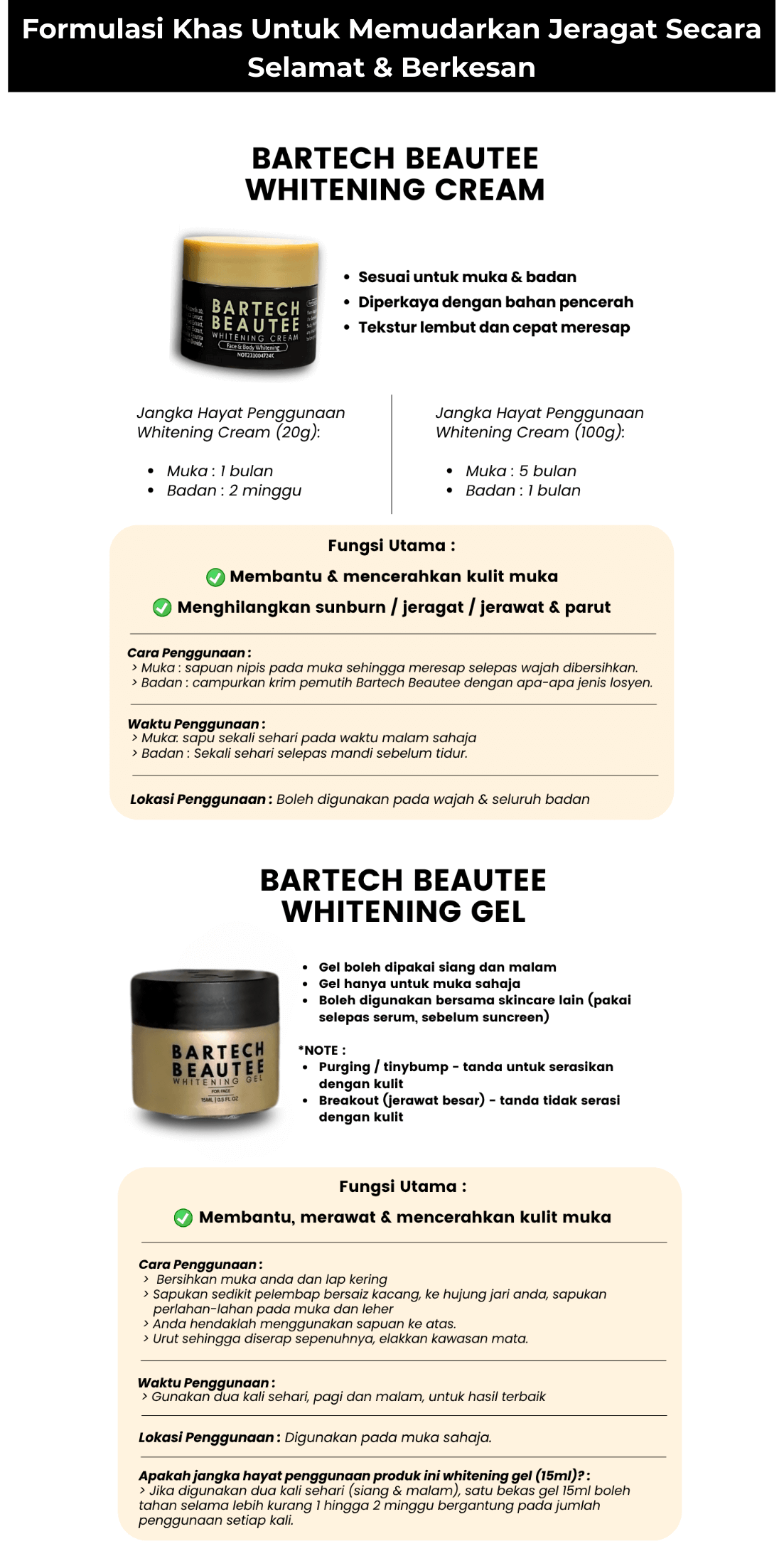 A: Gunakan pada waktu pagi & malam mengikut langkah yang disarankan untuk kesan optimum.