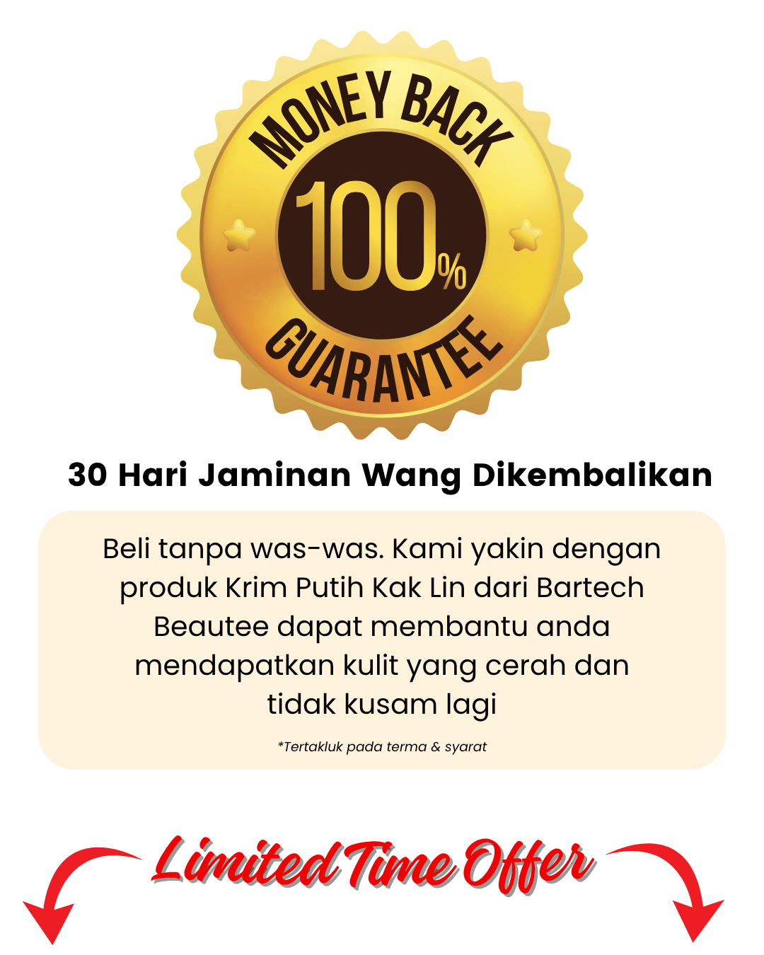 A: Ya! Krim Putih Kak Lin diformulasikan dengan bahan premium dan diuji secara dermatologi. Ia bebas merkuri dan hidrokuinon serta diluluskan oleh KKM.